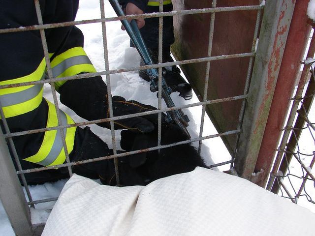Záchrana psa uvízlého v plotě
