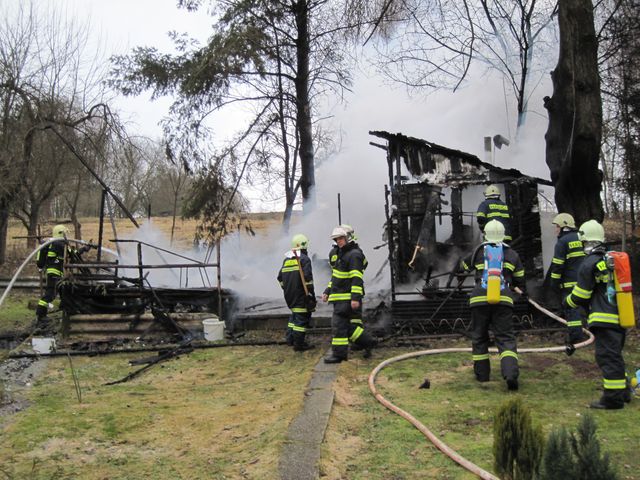 Požar chaty v Dolních Lážanech