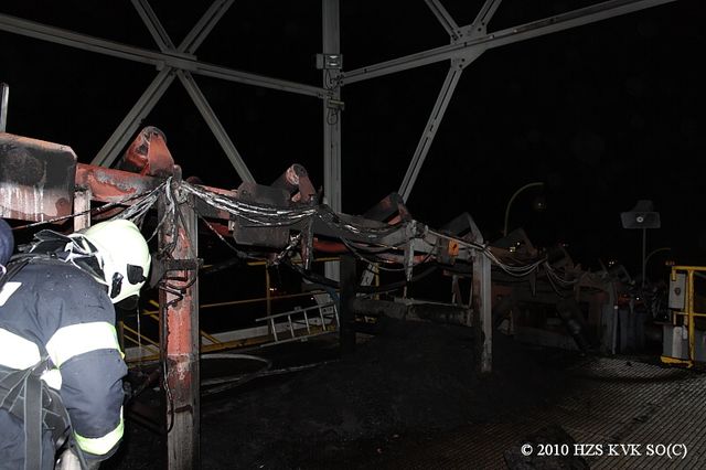 Požár pásového dopravníku v dole Jiří