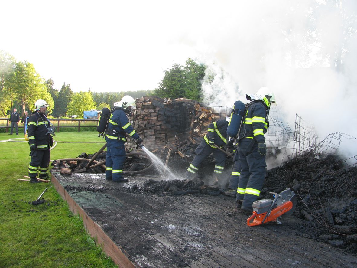 Požár palivového dřeva v Horní Blatné