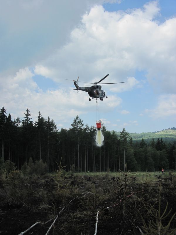 Požár lesa ve Vojenském prostrou Hradiště