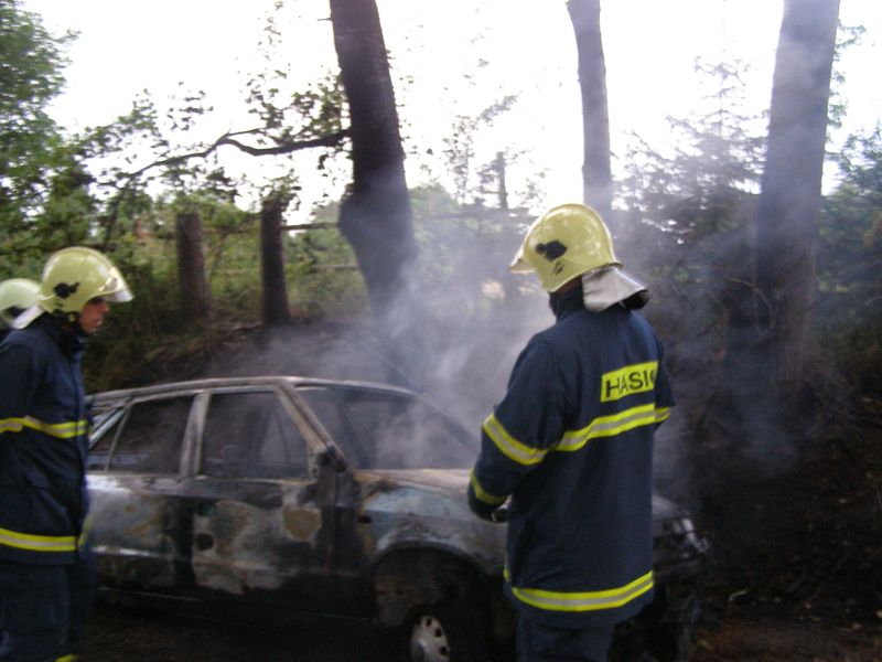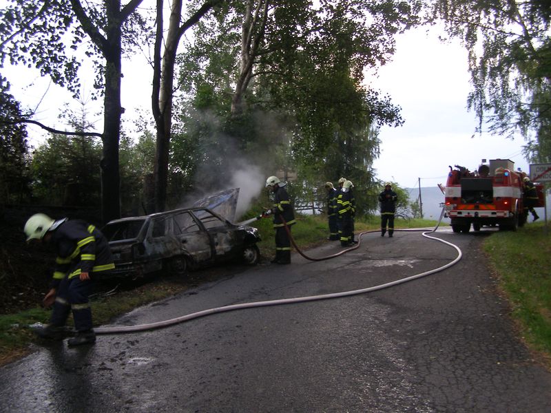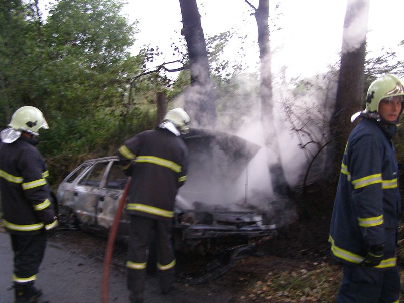 Hořící auto v Dolním Žandově