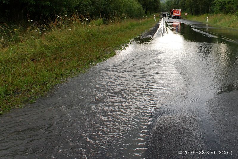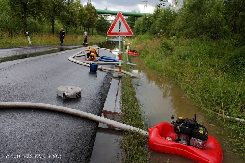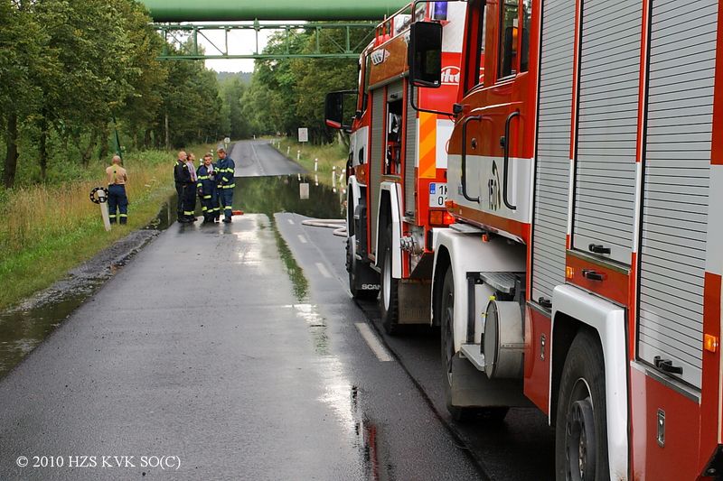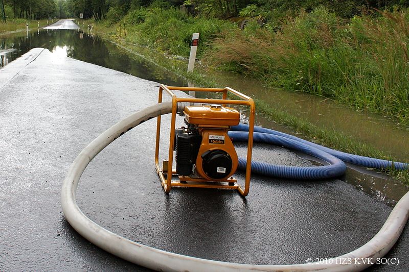 Čerpání vody ze silnice v Dolním Rychnově