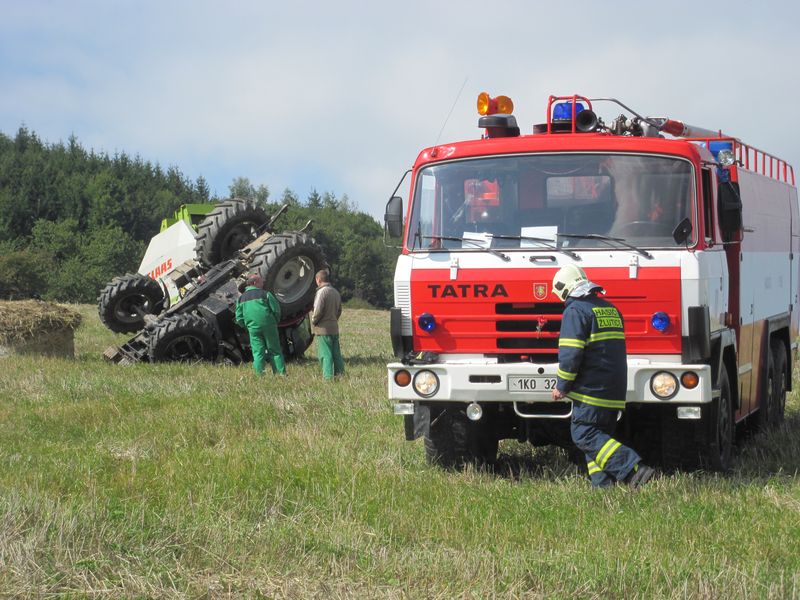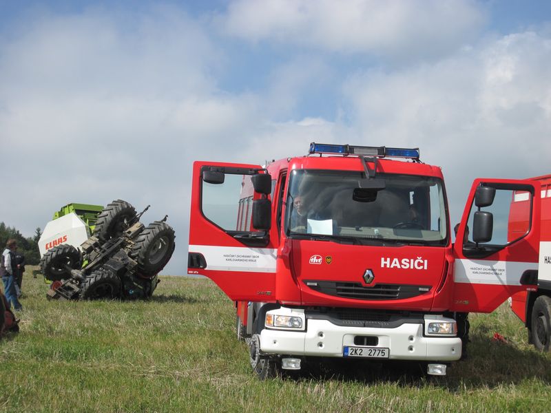 Převrácený traktor u Žlutic