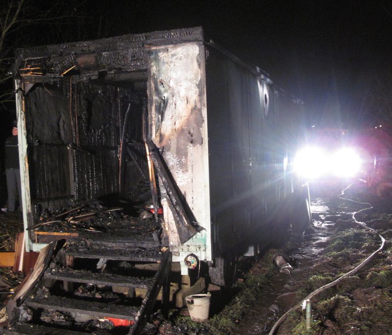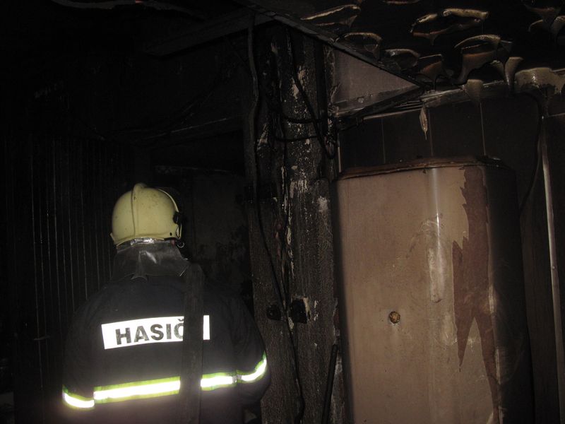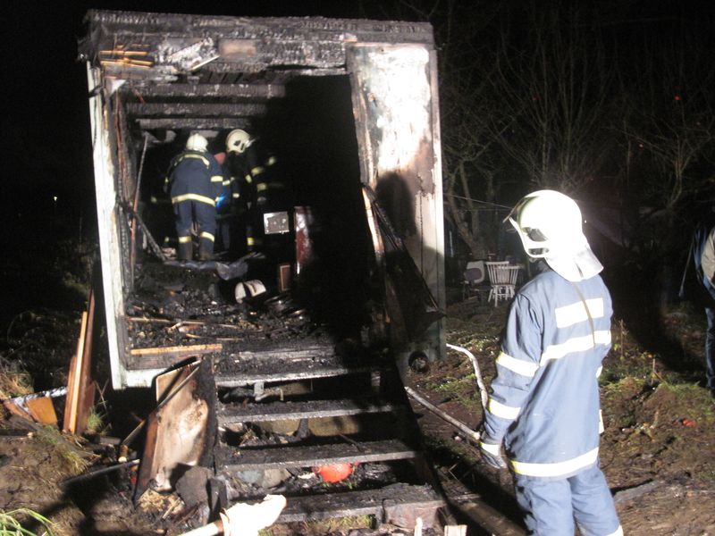 Požár maringotky, bezdomovci, K. Vary