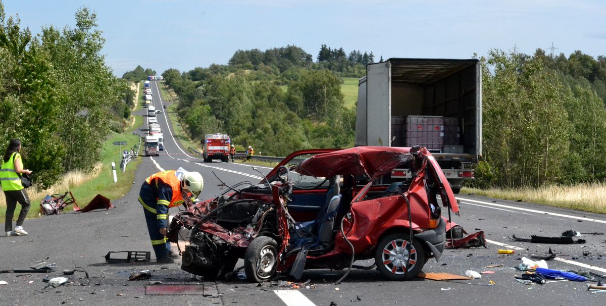 DN 1 OA a kamionu, 1 mrtvý, Vahaneč