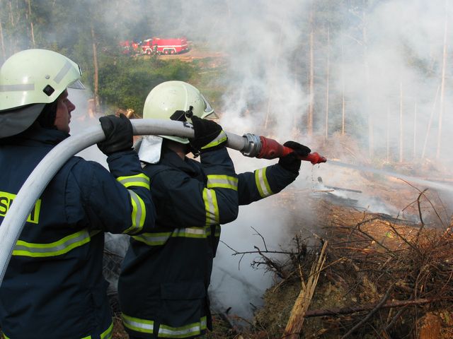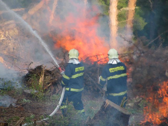 Cvičení požár lesa u Kraslic